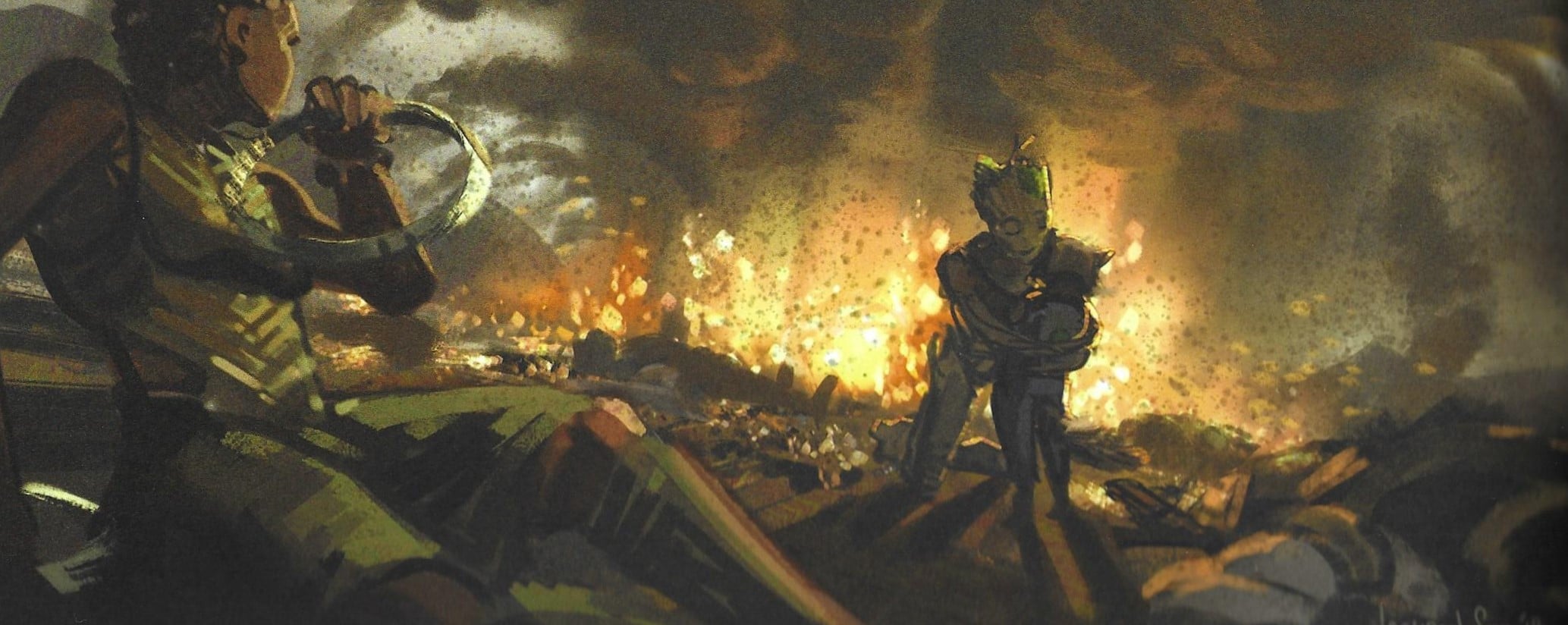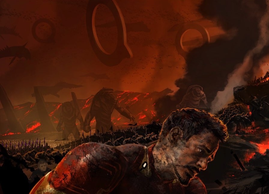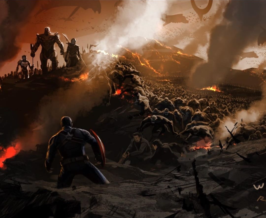 Avengers: Endgame arte conceptual muestra a Capitán América mirando a Thanos y su ejército.