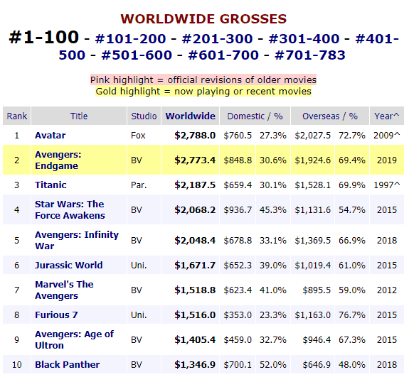 A continuación, vea cómo se posicionan las 10 primeras películas según el sitio web Box Office Mojo y lea a continuación por qué creemos que, desafortunadamente, esto no sucederá.