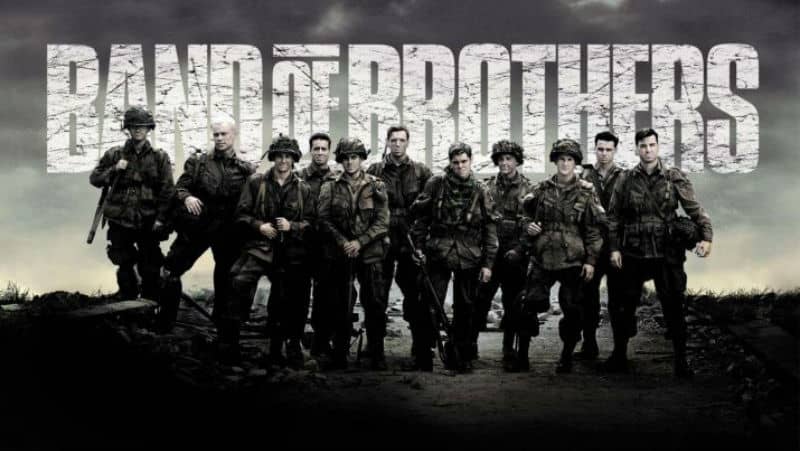 La miniserie histórica de HBO Band of Brothers está basada en el libro documental de Stephen E. Ambrose. Perfectamente producida por Steven Spielberg y Tom Hanks, trajo la fama a un gran número de futuras estrellas, como Damian Lewis, Michael Fassbender, Simon Pegg y Tom Hardy, quienes todos comenzaron en la serie con papeles menores.