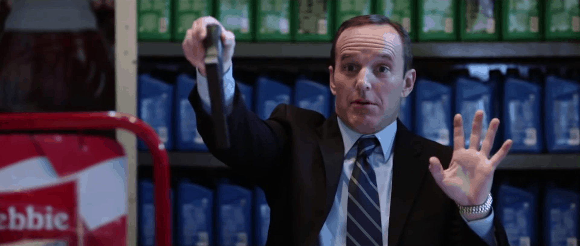El agente Coulson se detiene en una tienda y debe lidiar con un robo en curso.