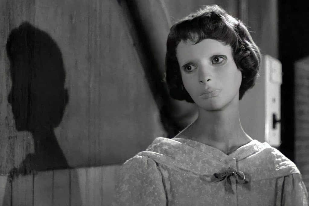 El clásico thriller de horror artístico de Georges Franju, Los Ojos sin Cara, trata sobre un cirujano plástico loco que planea crear un rostro humano perfecto para reemplazar el rostro desfigurado de su hija. Mientras no encuentre la víctima adecuada, ella se ve obligada a llevar una máscara blanca, vacía y adecuada que representa un lienzo en blanco en el que su padre quiere pintar.