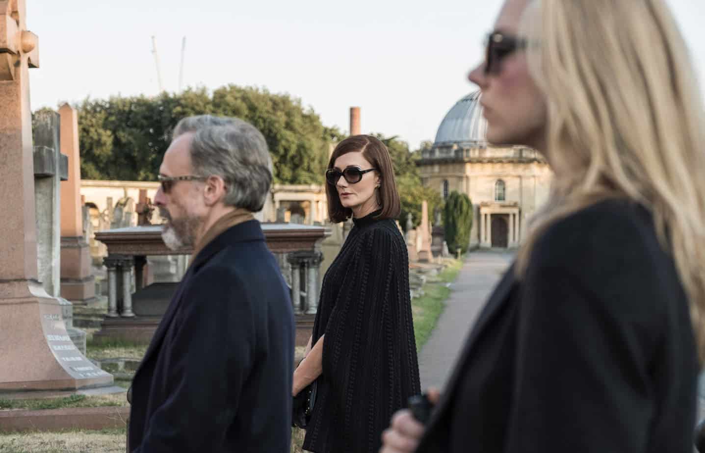 Junto con la trama, los personajes también son increíblemente tontos y superficiales. Quiero decir, el nivel general de esfuerzo puesto en lograr autenticidad en esta película es realmente miserable, pero cuando además le sumas la actuación bastante mala de gran parte del elenco, realmente no puedes dejar de preguntarte cómo esta película pasó siquiera las proyecciones tempranas con los jefes de estudio. Emily Ratajkowski es Veronique Radić (supongo que se suponía que debía ser Veronika, pero esto de Veronique sonaba más elegante que Veron’ka), la hija de Zoran Radić, que fue enviada muy joven a estudiar a Gran Bretaña y América, y ahora vive en Londres disfrutando de la vida de la alta sociedad, además es bipolar y, por supuesto, trama una conspiración internacional con los rusos contra su padre. ¿Lógico? Totalmente. Sin embargo, su estúpida caracterización no es lo peor, no lo creerías, porque ese lugar de honor lo ocupa precisamente la atractiva Emily, que actúa tan mal, tan sin expresión y tan inauténticamente que sus expresiones faciales en un momento de terror mortal parecen una escena surrealista de Monty Python’s Flying Circus; además, añade una catastrófica imitación del acento serbio en inglés, que le da a todo su personaje (que también se viste así) características de una barata prostituta rusa, y no de una educada miembro de la alta sociedad. Su padre Zoran, un empresario serbio acusado de crímenes de guerra en Bosnia, es interpretado nada menos que por Jan Bijvoet, ¡belga! (porque, seamos sinceros, no hay suficientes actores serbios o croatas o bosnios en el mercado… ejem… ejem…) sin ningún renombre, y que, aunque interpreta a un personaje que nació y creció hablando serbocroata, tiene un acento inglés casi impecable, a diferencia de su propia hija, que ha pasado más de la mitad de su vida en países anglófonos y aún habla como una prostituta rusa. Este Zoran Radić debería ser como una especie de antagonista al estilo de Richard Roper (Hugh Laurie) de la serie The Night Manager, como un filántropo que dirige juegos de guerra tras bambalinas, pero no hay absolutamente nada aterrador o evidentemente peligroso en él, excepto un morboso fetiche por las mujeres ciegas… porque, ¿por qué no? La protagonista femenina es ciega, su madre era ciega… ¿por qué no podría él sentirse atraído por eso? Joely Richardson es Alex, la colaboradora de Radić y hermana mayor de Marc (Ed Skrein)… no sé qué decir sobre ella, excepto que es terriblemente irritante y estereotipada como británica, aunque no estoy seguro de que Byrne intentara tal (auto)ironía; me parece que debería haber sido presentada como una mujer fuerte que ha luchado por su posición y ahora utiliza todas las maquinaciones tras bambalinas para mantener su fachada de poder. Desafortunadamente, no se presenta así. Ni de cerca. Este Marc (Ed Skrein) es igualmente un personaje indefinido, cuya historia tenía algún potencial, pero fue completamente destruida por decisiones de guion erróneas que lo llevaron a una caricatura fallida y exagerada de David Dunn de la película Unbreakable y un vengador al estilo de Bryan Mills (la serie Taken) o John Wick (la serie del mismo nombre).