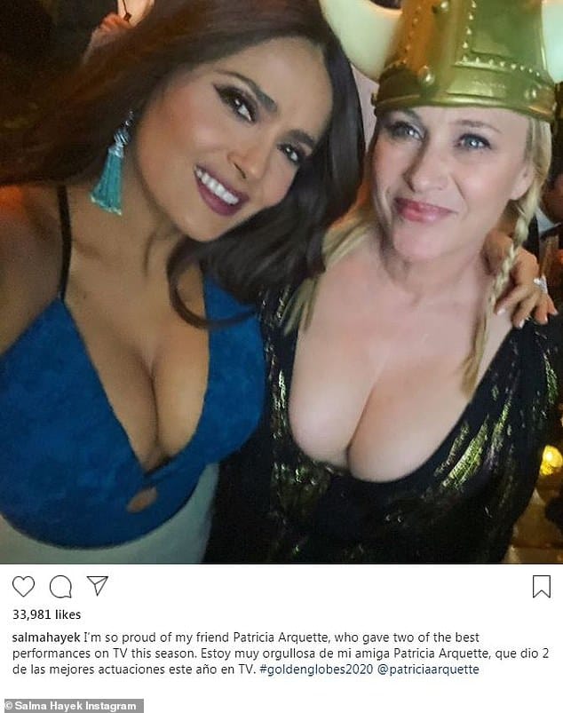 Salma Hayek sorprendió con su vestido (y escote) en los premios Golden Globes (video e imágenes)